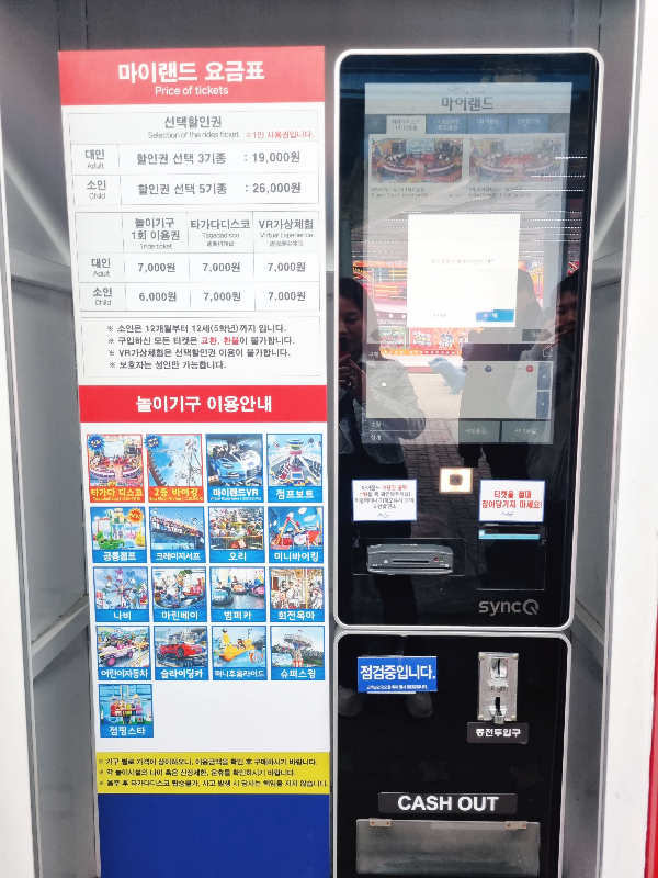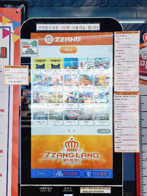 월미도에도 기계화 바람이.. 여기에도 키오스크가 있습니다. 할인권은 평일에는 선택이 되지 않는다는 점 참고하세요! 주말을 위한 가격 이벤트 같습니다. 왜일까요..? 저는 여기서 2가지 어트랙션을 이용했습니다. 바로 타가다 디스코와 바이킹이죠.