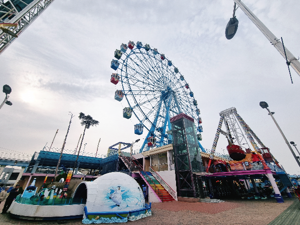 해변을 따라 걷다 보면 나오는 것은 월미도 놀이공원! 월미도 놀이공원은 두 군데로 나뉘어 있더라고요. 같은 사장님인지를 모르겠지만, 바다 양 끝에 하나씩 위치하고 있습니다. 우선 국립해양박물관 가까이에 있는 놀이공원을 가보았습니다. 여기에는 대관람차가 있기 때문이죠! 대관람차 타면 막상 특별할 것은 없지만 로망을 자극하는 느낌적 느낌이랄까!