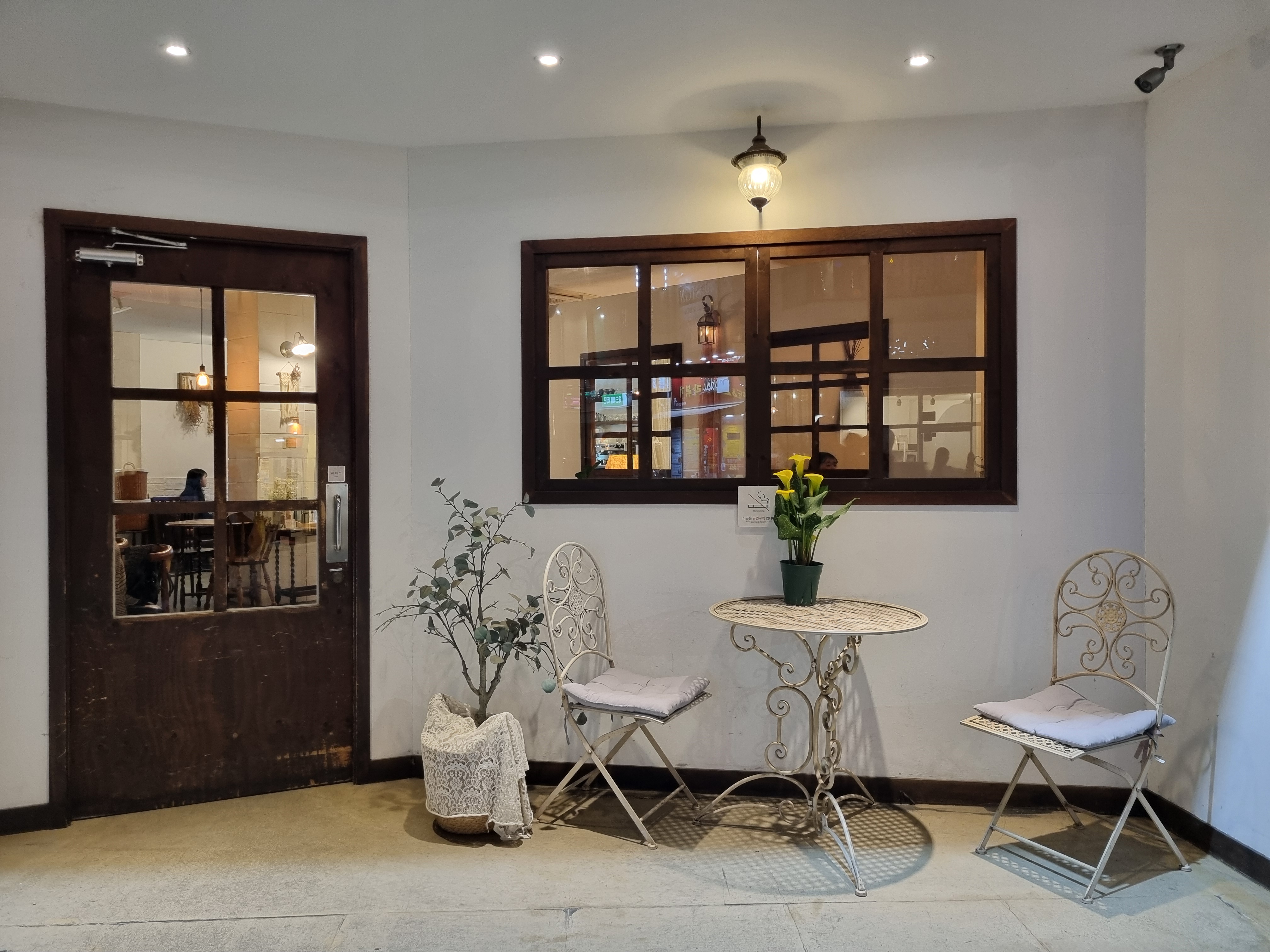 어디를 갈지 골목골목을 누비다가 마음에 쏙 드는 카페를 발견했습니다. 입구 세팅 모습을 보세요. 모던하면서도 따뜻한 느낌이 딱 내 스타일이었어요.