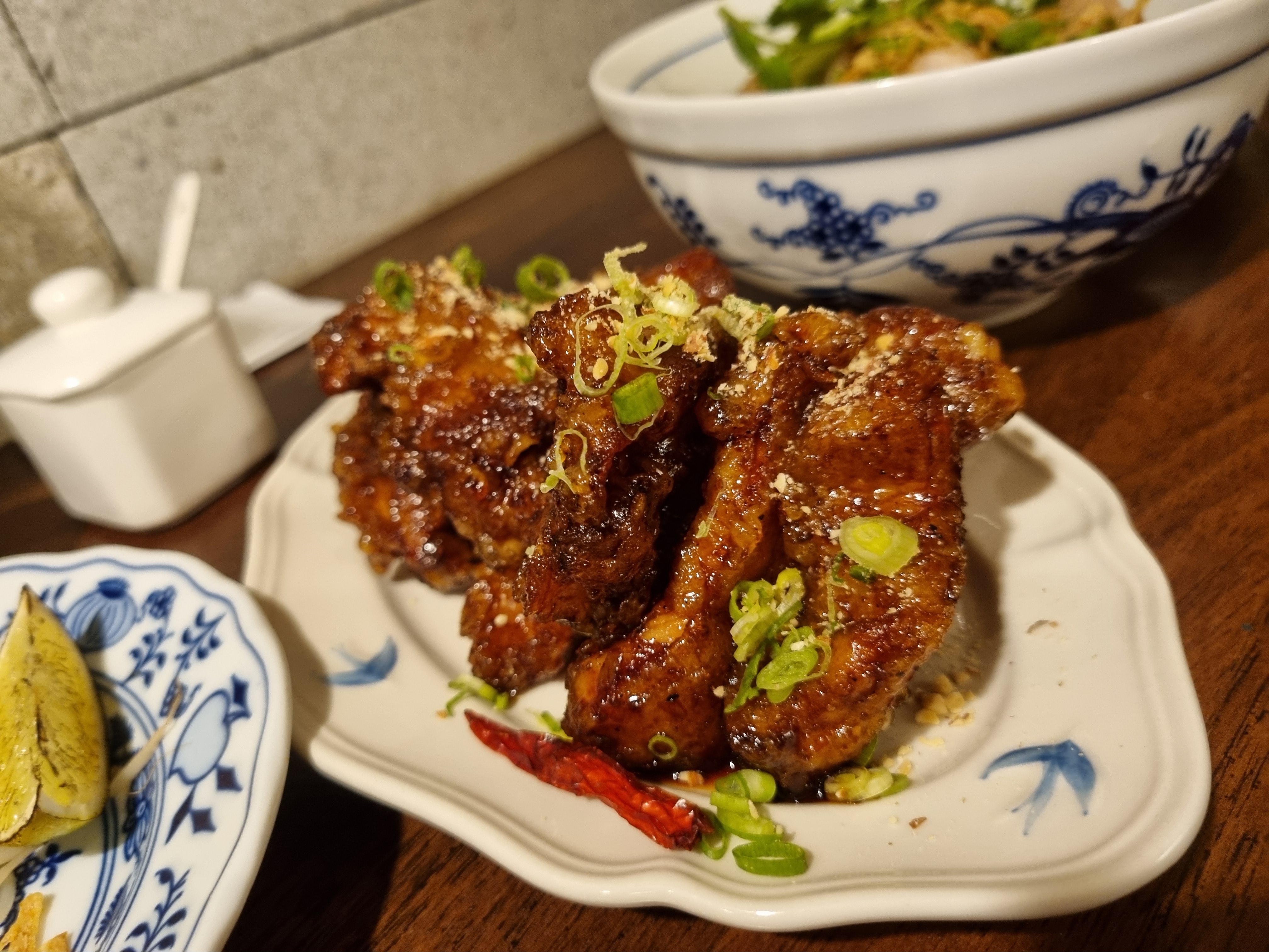제가 개인적으로 제일 기대했던 고추돼지튀김! 이건 꼭 드셔보세요. 저는 원래 고기를 좋아하지만 이 메뉴는 튀김의 바삭함이 달콤 짭쪼름한 소스에 지지 않으면서도 어우러져 있어요. 돼지고기인데 깐풍기의 느낌을 적용한? 부드러운데 바삭함이라 뭐라 말로 설명하기 어렵네요. 강추! 안성재 셰프가 추천한 이유를 알겠더라고요. 달짝지근하면서도 감칠맛 도는 양념이 중독성 있어서 지금 포스팅을 작성하면서도 생각이 납니다. 고명으로 올라간 땅콩가루와 파 송송, 고추까지 더해지니 맥주와도 잘 어울릴 것 같아요.