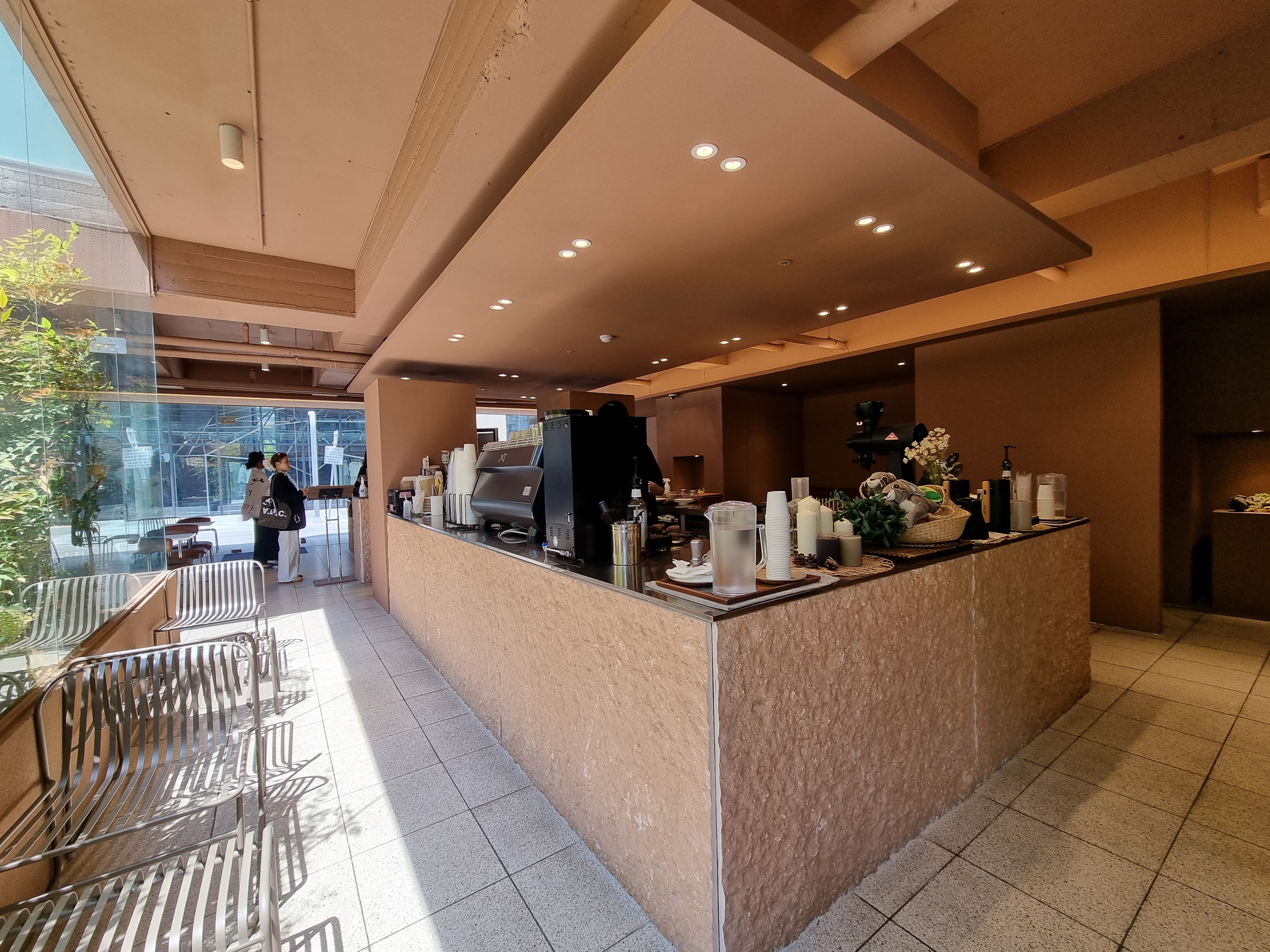 오퍼에서 인상적인 공간 중에 빼놓을 수 없는 곳이 바로 이 곳입니다. 그리 넓지 않지만 빌딩 숲사이에서 햇살을 온전히 받아내는 테라스입니다. 요즘같이 춥지도 덥지도 않은 날에 이용하기 딱 좋겠죠.