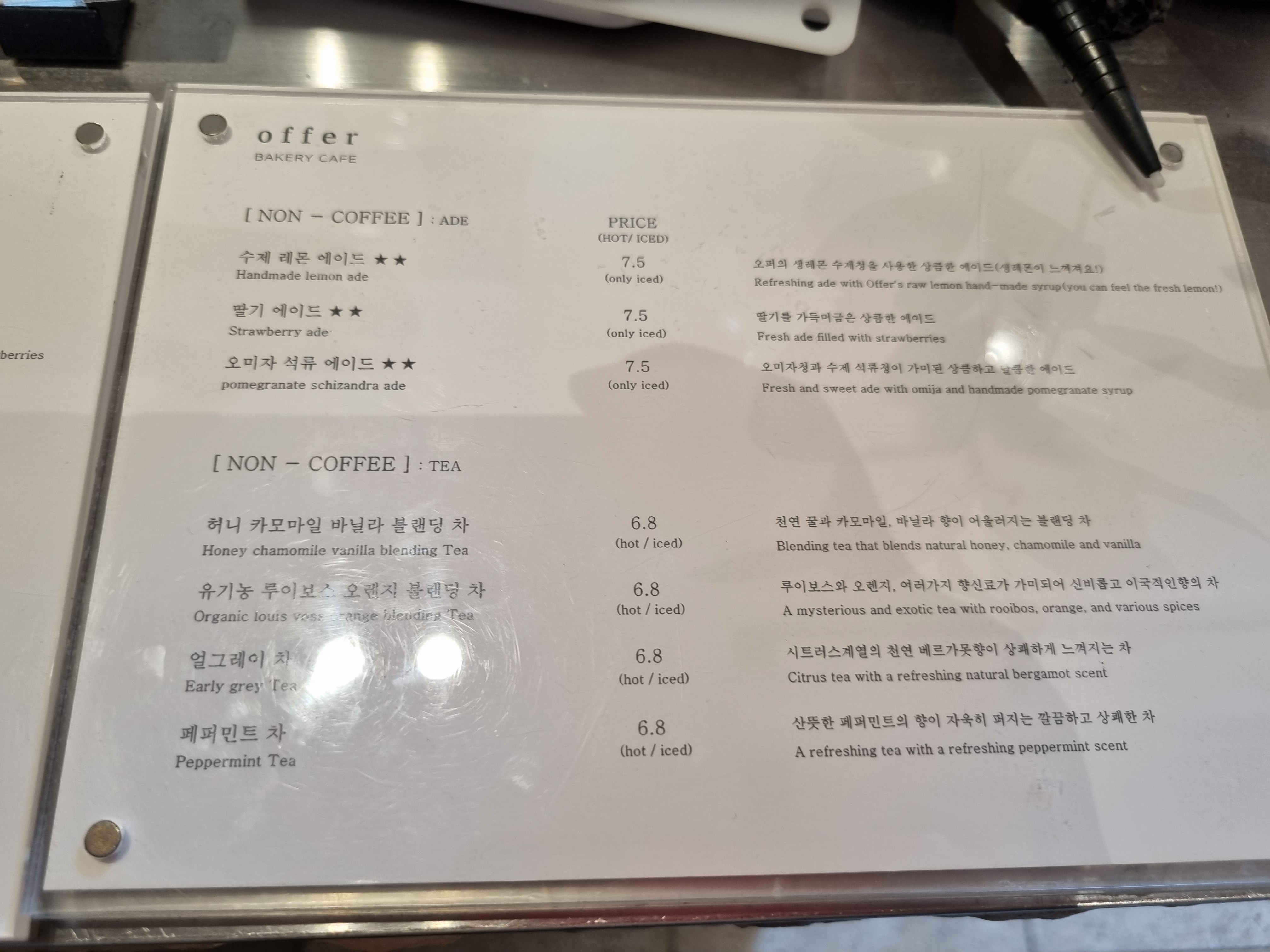 가격대를 확인해 보실 수 있도록 메뉴판을 찍어보았습니다.