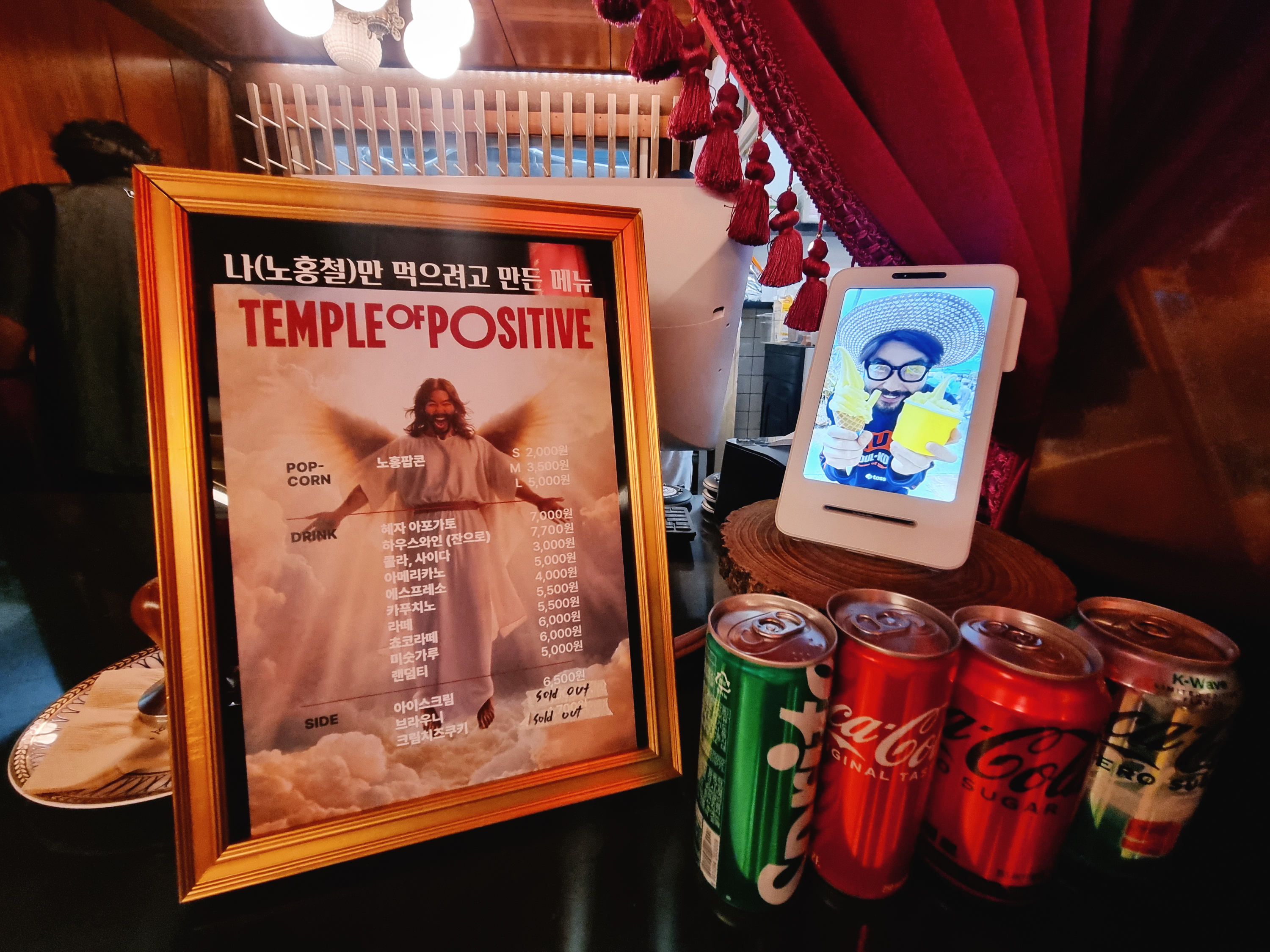 외관부터 존재감 확실한 이곳은 바로 노홍철 씨가 운영하고 있는 카페, 홍철책빵입니다. 다시 태어나도 노홍철이라는 문구가 카페의 정체성을 잘 보여주네요. 긍정의 사원이라는 말이 잘 어울리는지 궁금해졌습니다. 누가봐도 입구처럼 보이는 대문은 사실 입구가 아닙니다. 노홍철씨가 손가락으로 가리키고 있는 방향으로 가셔야 입구가 나와요.