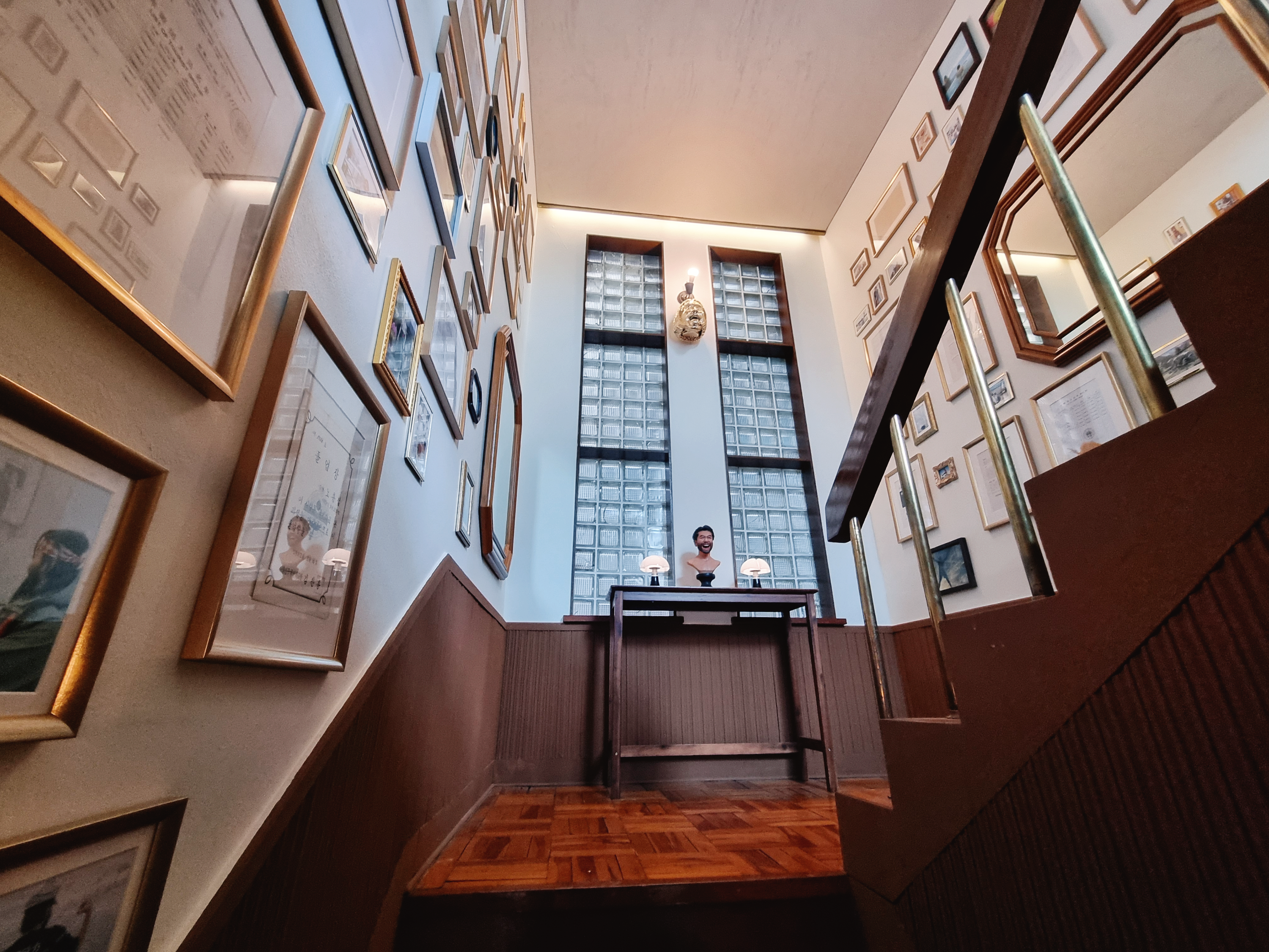 2층으로 올라가는 계단 벽면에는 노홍철 씨와 관련된 다양한 자료들이 전시되어 있었습니다. 마치 그의 일대기를 기록해 둔 듯해요.