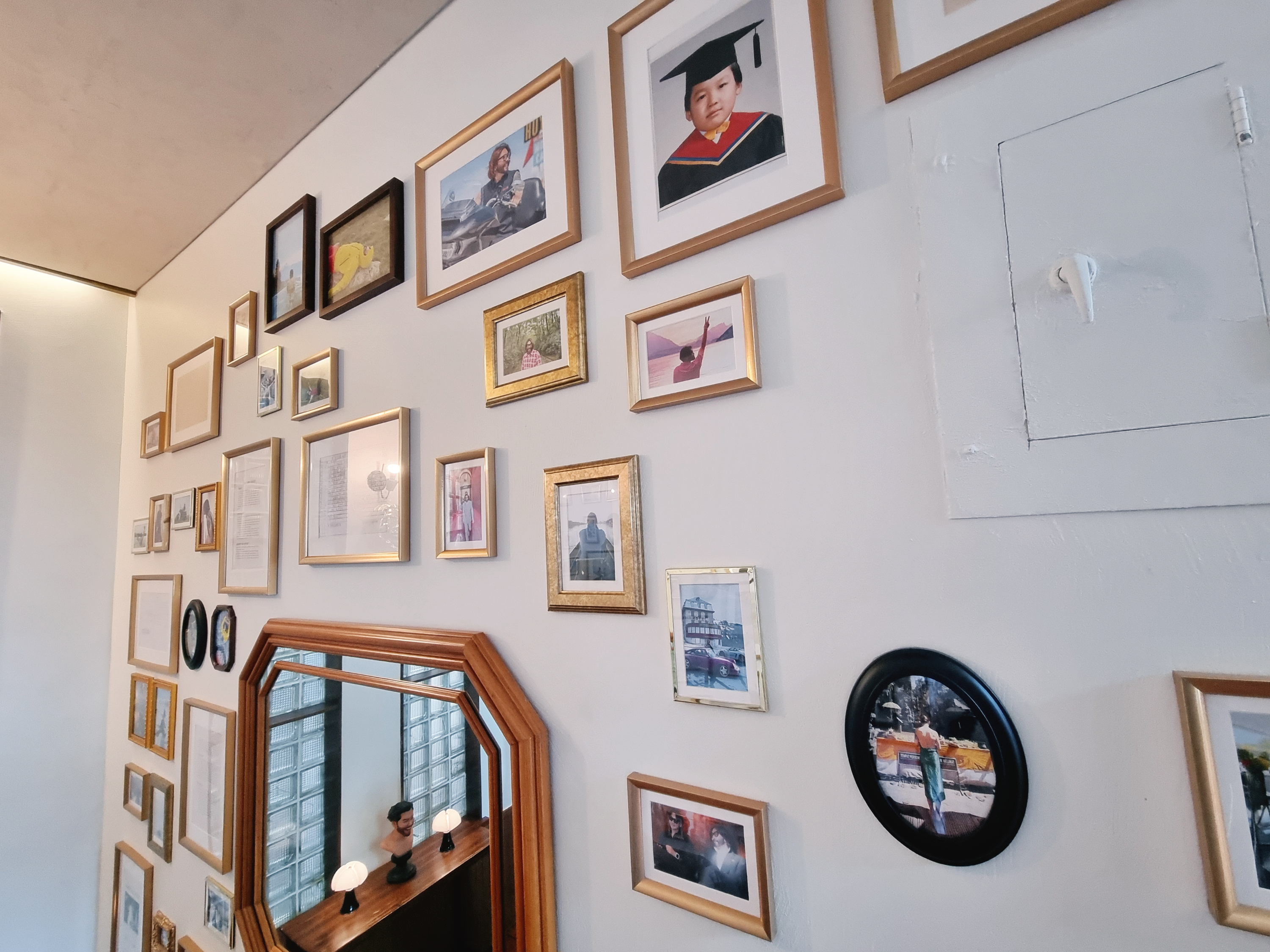 유치원 졸업 사진, 촬영하면서 동료들과 찍은 사진 등 다양한 기록들이 남겨져 있습니다. 카페 곳곳을 둘러보는 재미가 있어, 음료를 마시기보단 공간 자체를 즐기게 되는 느낌이었어요. 홍철책빵은 단순히 음료를 마시고 가는 곳이 아니라 노홍철이라는 인물의 상상력을 체험하는 작은 전시관 같다는 생각이 들었답니다.